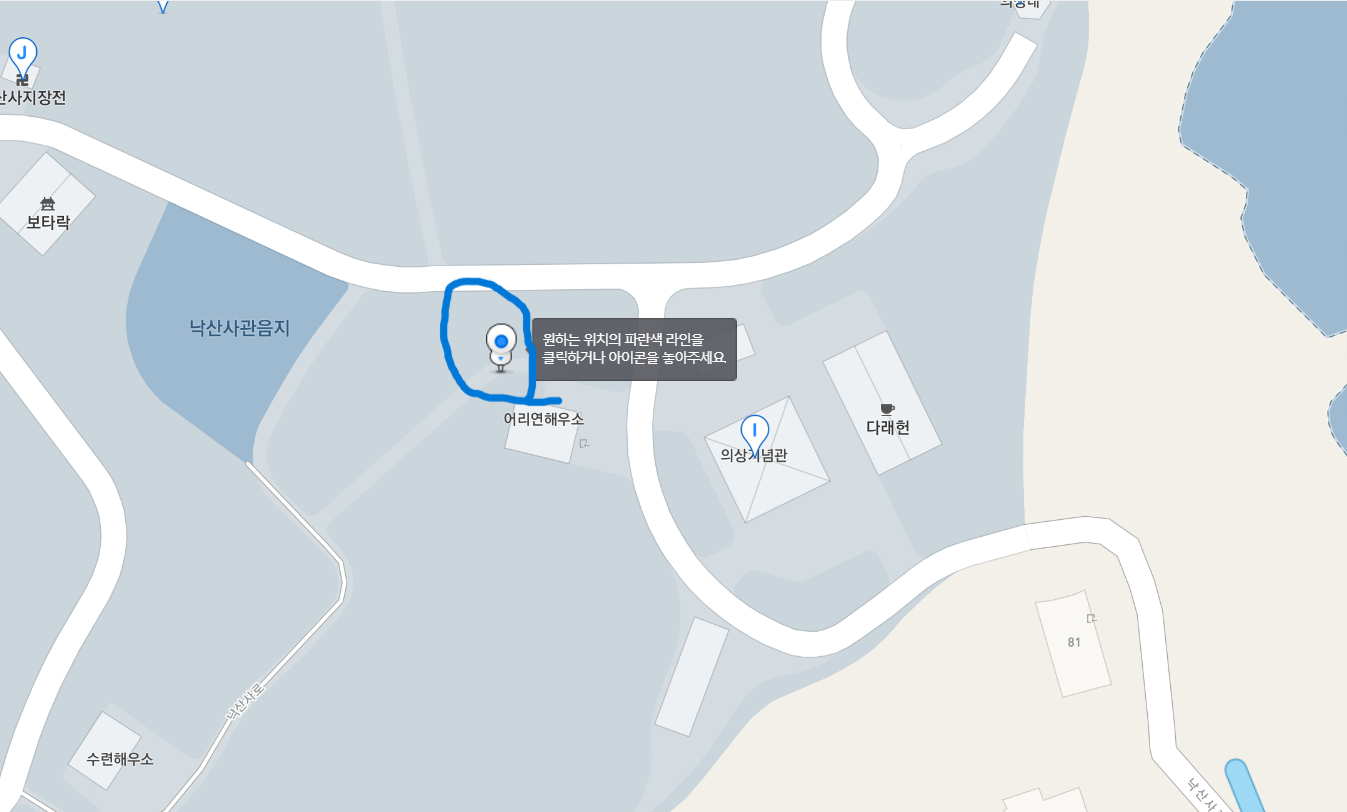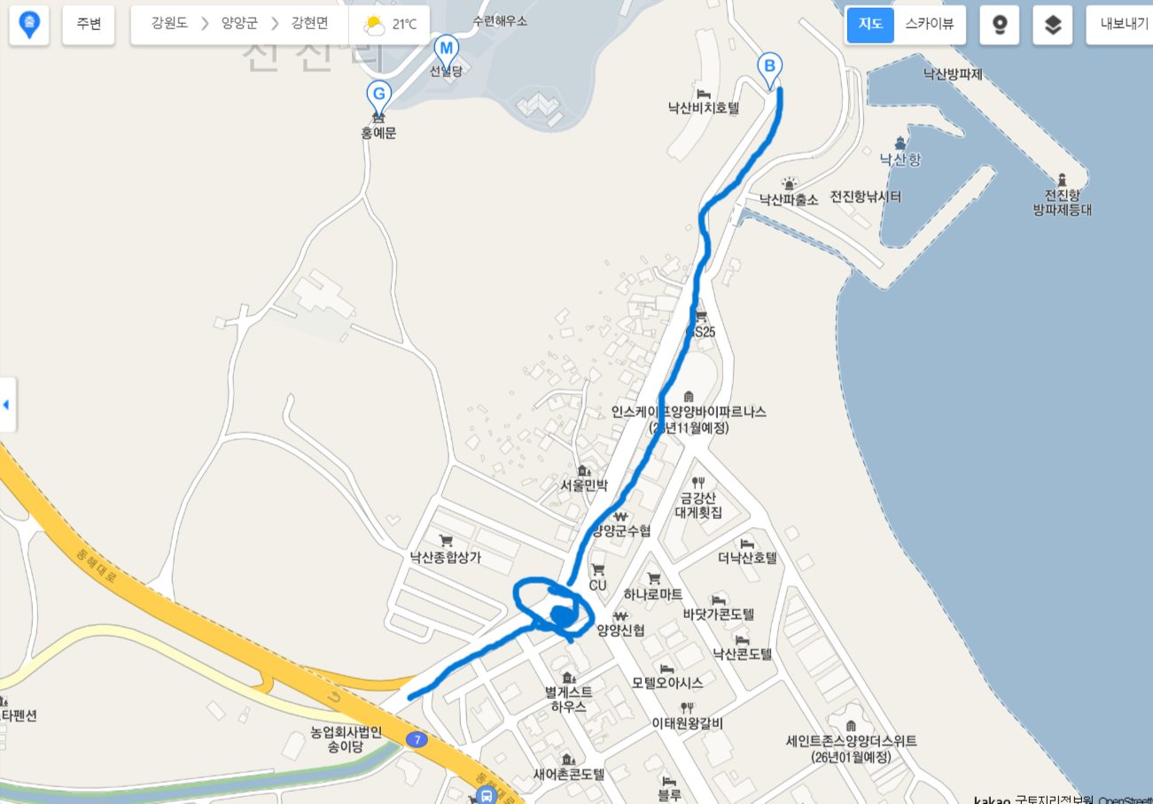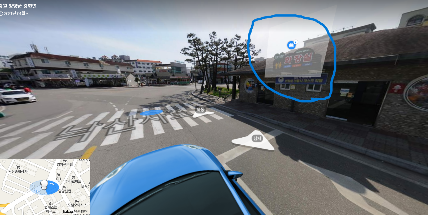 아래 사진은 공용화장실 위치와 낙산사 내부 화장실 위치입니다.