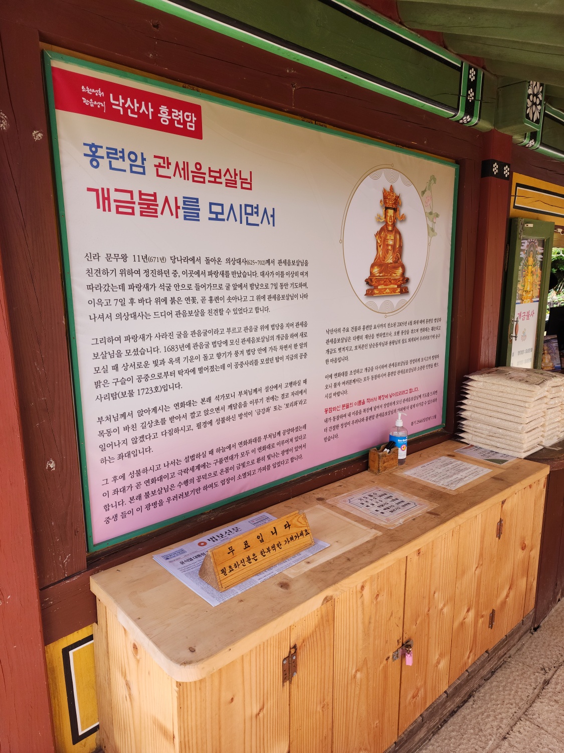 홍련암은 1984년 강원도 문화재 자료 제36호로 지정되었으며, 강원도에서 관광객들이 찾는 명소 중 하나입니다. 여러분들도 홍련암에 가시면 꼭 마룻바닥을 보시면서 소원도 빌고 관음굴도 눈으로 진접 확인해 보시면, 저와 같이 묘한 느낌이 들 것입니다.