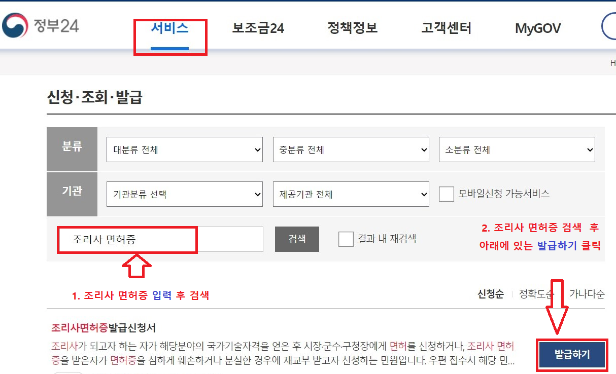 2. 조리사 면허증 발급 신청