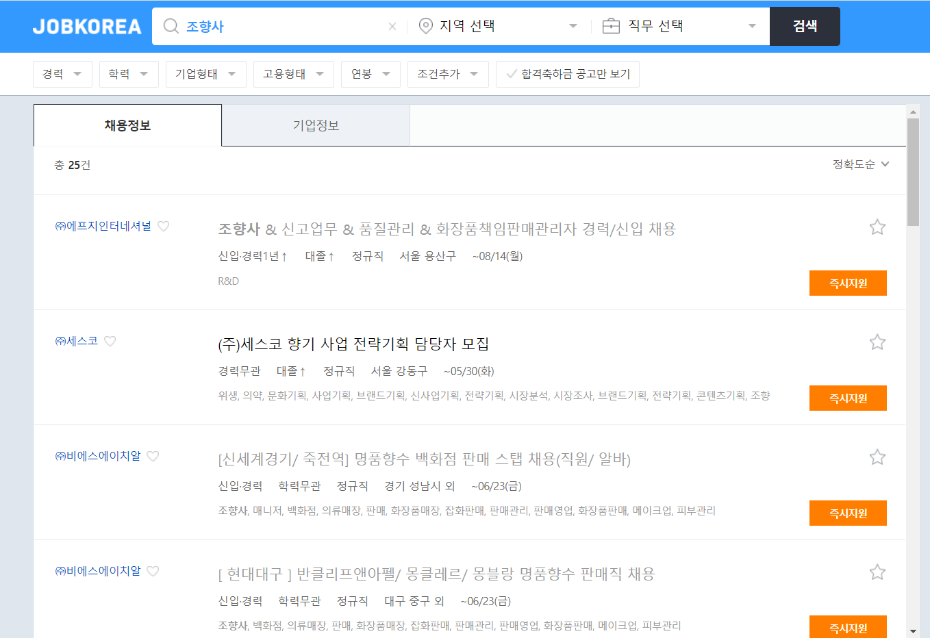 아래의 연봉 및 급여는 참고용으로 확인하시고, 잡코리와 사람인에서 우대사항을 확인해 보세요.