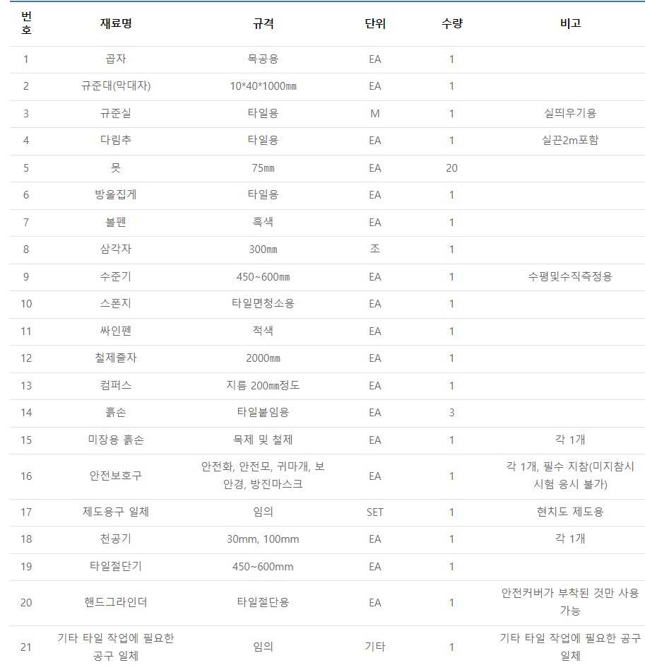 3. 타일기능사 준비물 보기